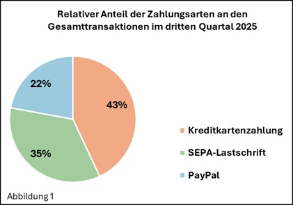 Aktuell ist die Kreditkartenzahlung die am häufigsten genutzte Zahlungsart auf der Plattform für Verwaltungsdienstleistungen (siehe Abbildung 1). Das bedeutet jedoch nicht automatisch, dass sie auch die bevorzugte Zahlungsweise der Nutzerinnen und Nutzer ist. Schließlich war es auch die erste Zahlungsart, die auf der gemeinsamen Zahlungsverkehrsplattform zur Verfügung stand.